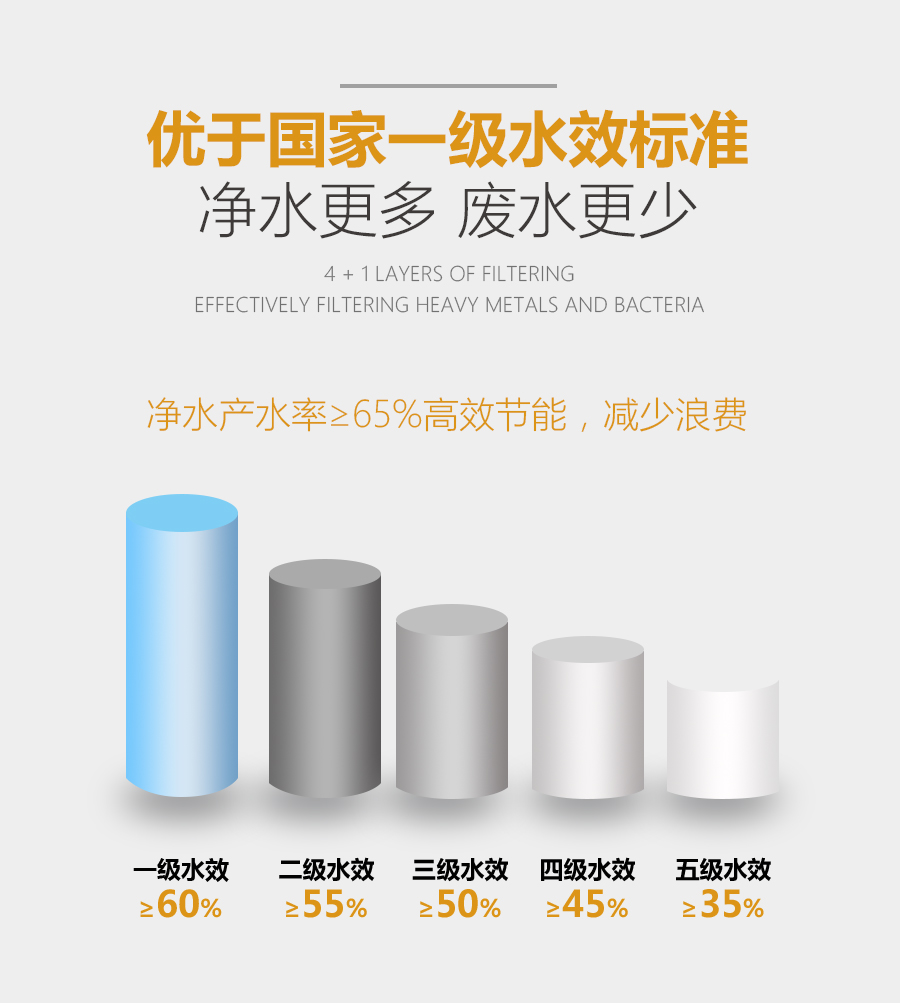 6.滤芯集成:五级滤芯,集成到两级过滤中,具更高的水效率,更高的精度和更长的使用寿命