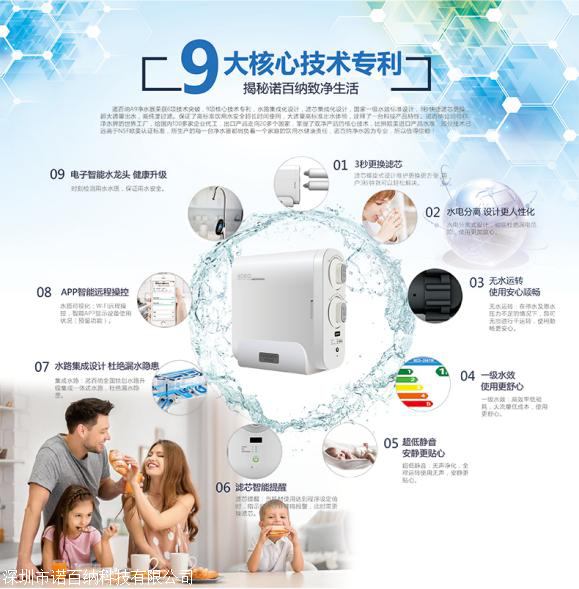 产品详情:诺百纳科技联合德国和法国百年水滤器实验室首倡安装饮用水净水器的品牌定义,强调诺百纳净水器品牌的奇特产品和技术优势,并结合技术和适用性来说明诺百纳净水器'的产品定位和身心健康理念。