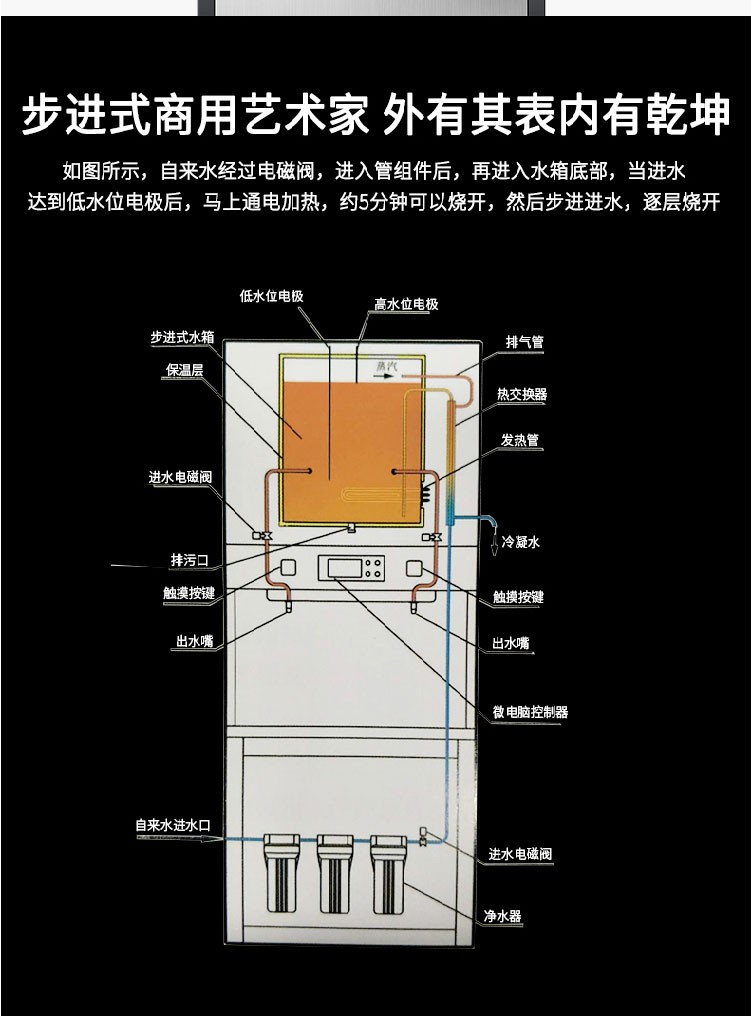 7.内置压力桶:高柜内置压力桶,美观大方,节约占地面积